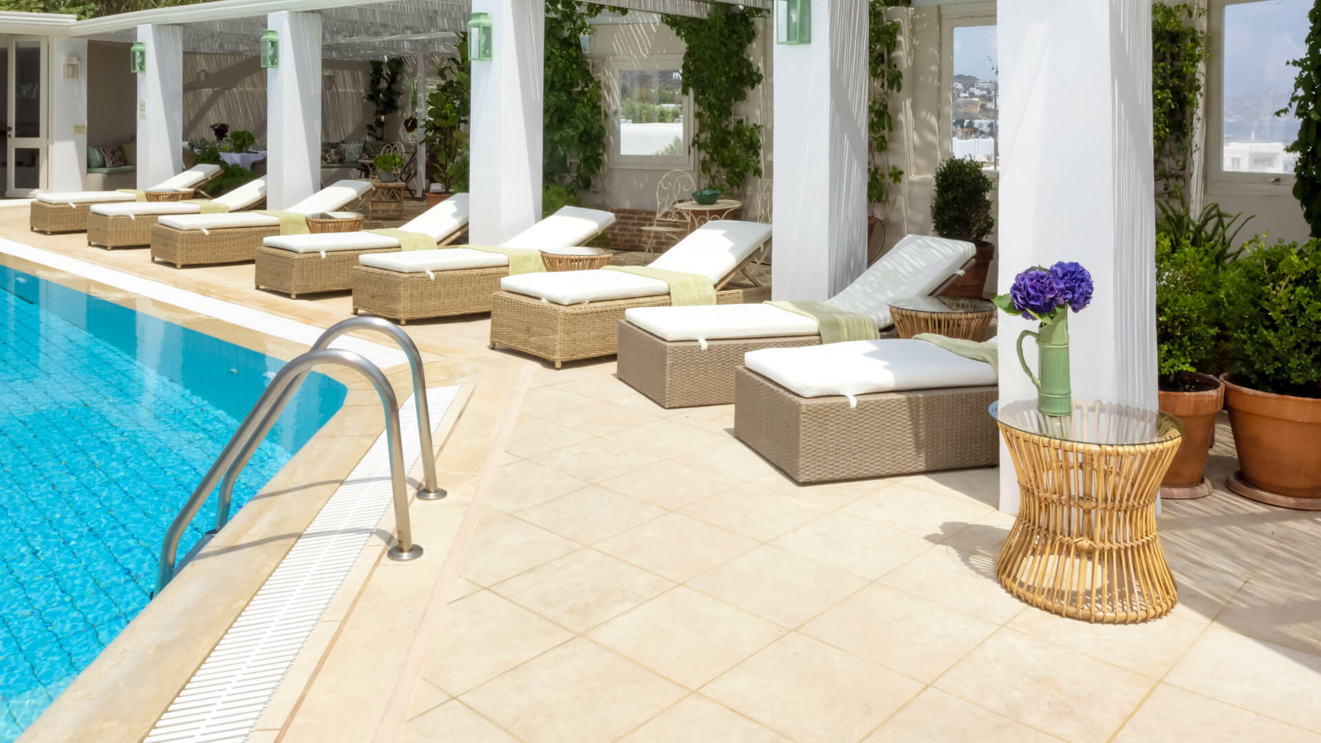 Το Dorion Hotel διαθέτει τέσσερις πισίνες, μια μεγάλη και τρείς μικρότερες, που είναι ιδανικές για μπάνιο, χαλάρωση και ξεκούραση κατά τη διάρκεια των διακοπών σας στη Μύκονο. Άνετες ξαπλώστρες πλαισιώνουν τις πισίνες όπου οι επισκέπτες μπορούν να απολαύσουν ένα ποτό ή να κάνουν ηλιοθεραπεία, απολαμβάνοντας τον ζεστό ήλιο της Μυκόνου. Από τις πισίνες του ξενοδοχείου η θέα στον πανέμορφο κόλπο του Ορνού και στη Μύκονο είναι μοναδική και θα σας κόψει την ανάσα! Η Μύκονος έχει την πιο χαλαρή ατμόσφαιρα και το ξενοδοχείο μας είναι ο καλύτερος εκπρόσωπος της μυκονιάτικης φιλοξενίας και της κυκλαδίτικης αρχιτεκτονικής.